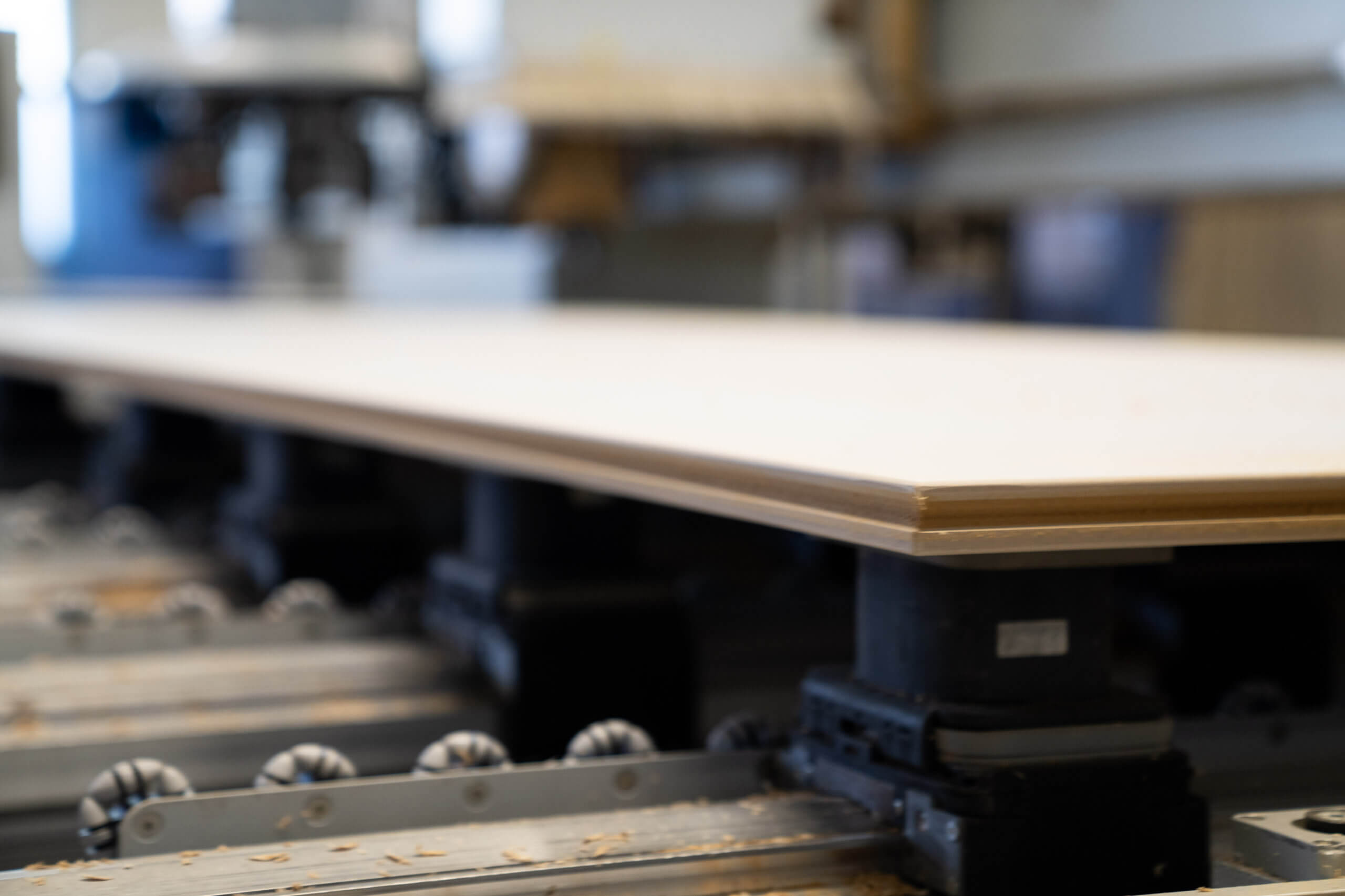 Ob für Einzelanfertigungen oder Großserien, unsere hochautomatisierten Prozesse auf einer 10.000 m² großen Produktionsfläche garantieren Präzision und Qualität. Vom präzisen Zuschnitt über das feine Kaschieren bis hin zur detaillierten CNC-Bearbeitung und der sorgfältigen Bekantung – wir setzen modernste Technik ein, um Produkte zu schaffen, die nicht nur beeindrucken, sondern auch beständig überzeugen.